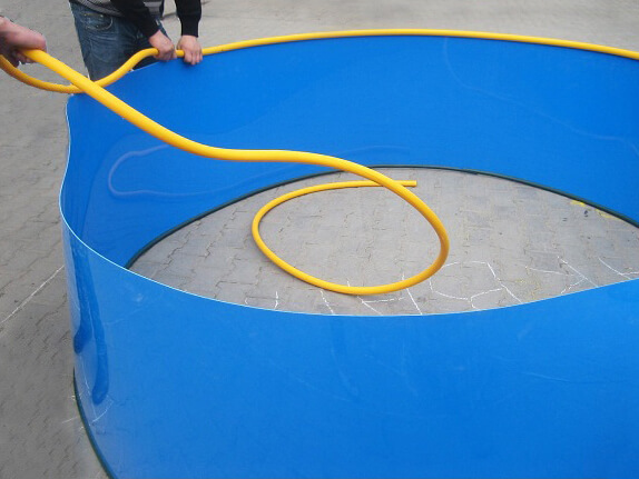 - используемый пластик не боится заломов и сгибов. Он не подвергается коррозии и устойчив к морозу, солнцу , абсолютно нейтрален к земле при прикапывании бассейна.