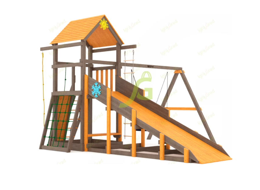По желанию клиента игровая площадка может быть укомплектована дополнительными элементами. Можно заменить обычные качели на качели-гнездо, которые очень удобны в использовании. Наши специалисты обсудят с вами все детали заказа и быстро оформят заявку.