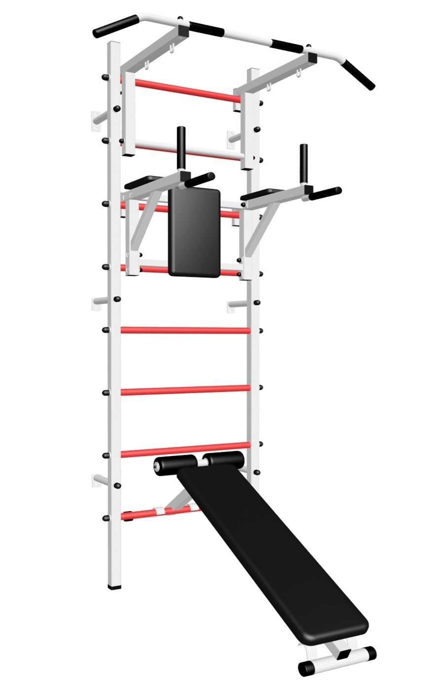 - Цвет покраски: белый; Цвет фурнитуры: черный; Цвет ступеней: черный, разноцветный, синий, желтый, красный.