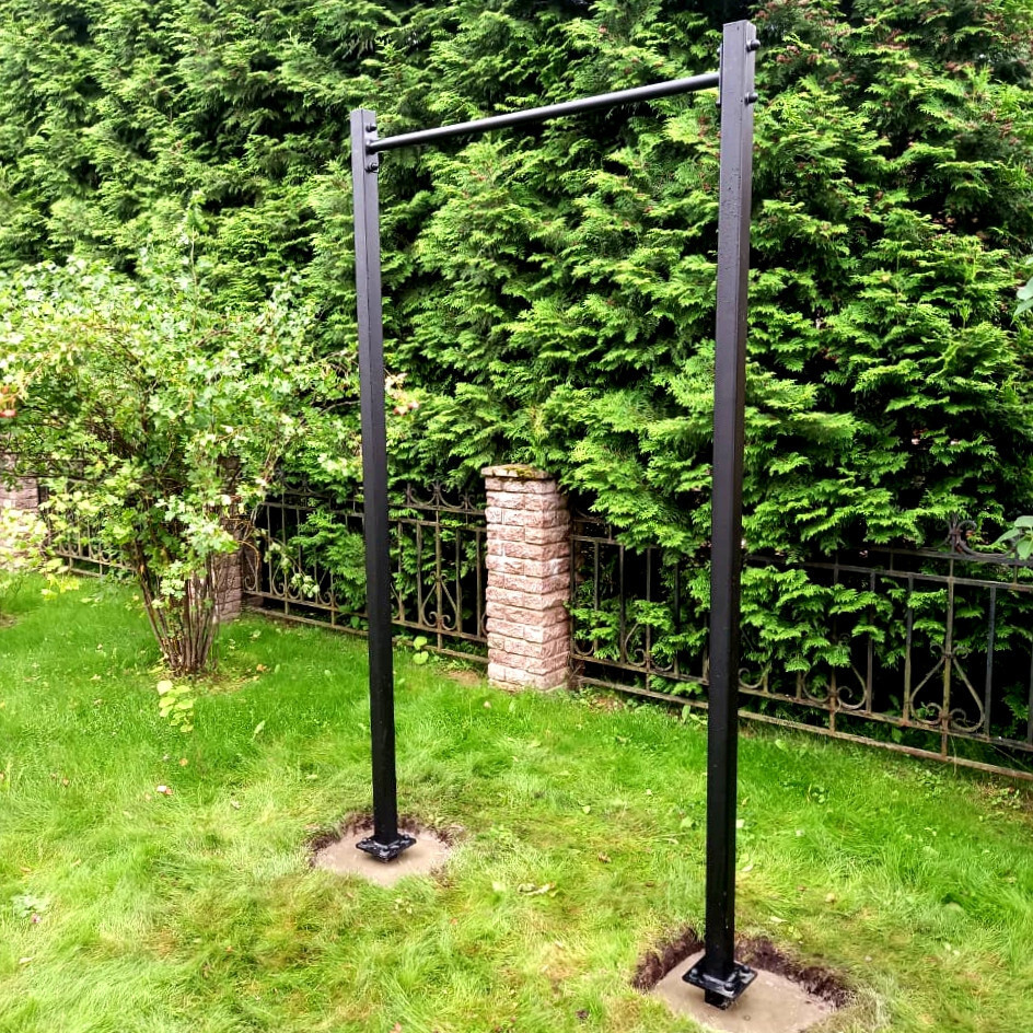 Уличный турник Sv Sport изготовлен из профильной трубы 60 х 60 х 3 мм и круглой стальной трубы d 33,5 мм и толщиной 2,8 мм. Окрашен качественной, импортной порошковой краской в 2 этапа, устойчивой к коррозии, истиранию и температурным перепадам. Все торцы, болты, гайки заглушены пластиковыми заглушками. Устанавливаются стойки путем бетонировки на глубину не менее 600 мм.
